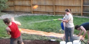 My daughter, Katie Beth, nails her husband, Nate, during a recent family water battle!