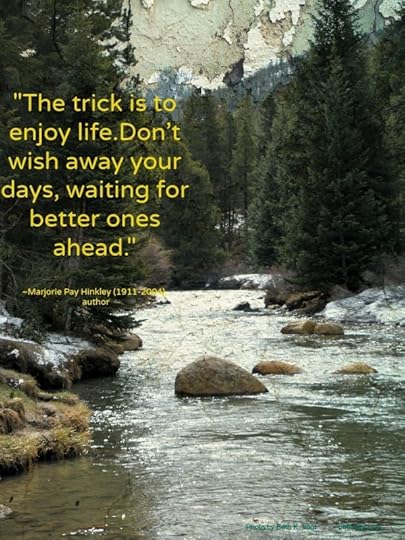 In Your Words: Look back over your shoulder: What did you enjoy the most about this week? I’d love to hear about it. Join the conversation! While we’re talking today, I’m enjoying my time up in Estes Park, CO, which is one of my favorite places to be. I’m with my husband and youngest daughter (and our 2 dogs, of course). And I’ve got my camera and a workbook to sketch out the plot of my next novel. I’ll return next week with some new photos and a better idea of where this story is going!