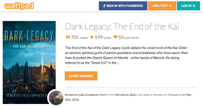 Dark Legacy: The End of the Kai was launched as a featured work on Wattpad on September 3, 2013, and within three weeks it hit 70,000 reads and 599 votes.