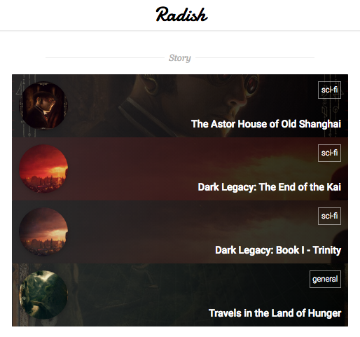 You can check out my Radish webpage listing my literary works available on the app @ www.radishfiction.com/users/TheLegacyCycle.
