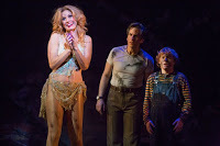 Now I must stop and sing the praises of Carmen Cusack making her Broadway debut as that literary editor Alice Murphy and say what a star she is. A voice that killed me. Her tone, belt, mix - everything I enjoy in a female singer. She colors her voice for this role with an ache and a quiver that would resonate through the Appalachian mountains. She switches from young as an adorable, care-free Loretta Lynn type to a mature, reserved, guarded woman (that reminded me a little of the cutting Dixie Carter as Julia Sugerbaker). She transforms physically as she goes back and forth and absolutely feels every moment of this story - and we see it all in her eyes. (I didn't realize until afterwards when talking to a friend that I saw Ms. Cusack off-broadway as the gym teacher in the revival of Carrie.) I do believe Broadway will be seeing MUCH more of her in the future.