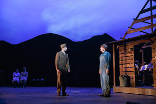 The show has been worked on at the Old Globe in San Diego and at the Kennedy Center this past fall and has gone through many changes (as I read up on it after seeing it). Characters were cut and changes made. There are still flaws in the book: the lyrics are sometimes too simple and stay truer to country music story-telling instead of what we're used to in a Broadway musical (and for this BMI Musical Theater writer - the imperfect rhymes would bother my ear occasionally), and I wish the big 11 o'clock number had more depth to the lyrics that matched the joyous moment happening on stage. But there is so much that makes up for those shortcomings that I found it beautiful and powerful and an honor to get to witness. Walter Bobbie as director and Josh Rhodes as choreographer have done an awesome job with this piece so that it moves from period to period stunningly; yet never over the top. Even the set moves are so fluid as we whisk in and out of periods and locations. The ensemble is used as a greek chorus in a way that Bridges of Madison County wishes would have worked for them. Here, it works wonderfully.
