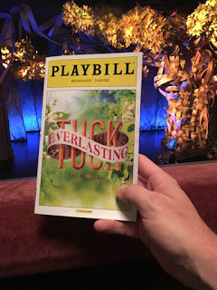 Speaking of lead, this show is lead by 11 year old Sarah Charles Lewis and what an amazing job she does in her Broadway debut as young Winnie who discovers the Tuck family and their secret of living forever. There are other performers that I've absolutely loved on stage in other shows (Carolee Carmello, Michael Park, Terrence Mann, Andrew Keenan-Bolger), yet something is missing in this show for me. None of the music by Chris Miller and Nathan Tysen takes me anywhere. All the songs blend into each other sounding too similar. (My theater partner pointed out a few they liked that stood out to them.) The book feels like there are huge holes in it that never let us really get to know the Tuck family (hello, title of the show), which in turn means I don't end up feeling anything for them. There are also setups that I think are going to lead in one direction and then dropped. (Miles Tuck gets a song all about his son and I really believed there was going to be a huge revelation about him that didn't pan out.)