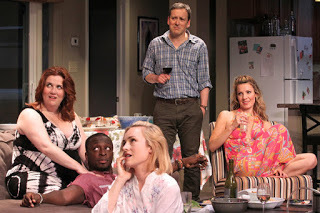 I love Jeremy Shamos as an actor in everything I see him do. He plays 'every man' in such a way that you cheer for him even when he says things you may not agree with. I've read reviews that called his character of Chris as the a$$hole of the show, but I tend to disagree. Sure, he says things that are very unkind, but he's also struggling with the entire concept - even though he obviously is intrigued or he wouldn't be at the party. I actually see the character of Roger (played perfectly smuggly by Noah Emmerich) as the alpha dog pushing Chris's buttons. With Chris, you feel his desire to try something new, yet his constant struggle with his own personal moral code. Even as his pressure breaks and his rants grow, he continues to return because some part of him is still interested (I don't believe it's all about his desire to be correct and convert the others in the room). Shamos is perfect showing that growth, that boiling over, and an exasperated man who has dropped down the rabbit hole and not sure he truly wants to get out.The entire diverse ensemble is greatly acted with Donna Lynne Champlin, Andy Lucien and Chinasa Ogbuagu rounding out the couples. Pam McKinnon has directed this piece in a way that makes you feel every single moment taking place. We are a part of the evening - the funny moments and those that are uncomfortable. The play takes place in real time which also adds to the intimacy of the entire thing.