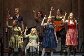 which showed us the Queen and her weekly visits with the Prime Minister which gave us a great glimpse into the life of the reigning monarch. Then I discovered that much of this new play written by Mike Bartlett and coined "A Future History Play" was written in iambic pentameter and I was frightened to sit through the 2 hour and 40 minute play. As frightened as I sometimes am when seeing Shakespeare.Boy was I wrong.