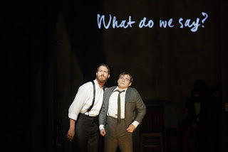 For those that wonder what this is: it's a little Peter and The Starcatcher meets Once with a rocking, pulsating score that gives way to haunting melodies and the tightest harmonies seven voices can create. That score (co-written by The Lobbyists who are all performing it) is glorious. I left humming the closing song and still can't get it out of my head. I must mention the names of this ensemble group because I've never seen such devotion to artistic work - perhaps because you are sitting so close to them that you feel every single thing they do - but they are living, breathing and sweating this story out of every inch of their bodies. Tommy Crawford, Eloise Eonnet, Alex Grubbs, Will Turner, Tony Vo, Douglas Waterbury-Tieman, and Raymond Sicam III give their all.