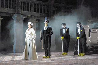 The main reason people are drawn to this piece is to see the remarkable Chita Rivera's return to Broadway. To think this woman has spent numerous decades on the Great White Way makes one realize they are in the presence of royalty. She has been involved with this show since 2001 and obviously knows this character very well. I bow to her greatness and understand why she has been remembered at Tony time for this role. However, I found myself drawn to Anton, her former lover, now played by Tom Nelis since Roger Rees has had to leave the show. He, like this entire cast full of Broadway vets such as David Garrison, Mary Beth Peil and Timothy Shew all have amazing voices. The sounds that reverberate through this gloomy stage are beautiful.