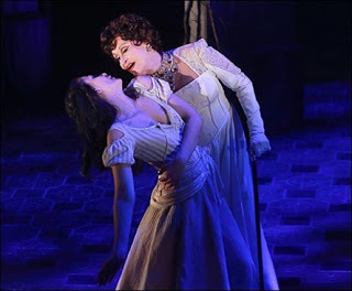 Yet for me, this Tony nominated best musical is missing something. And I think it sits on the shoulders of the often wonderful director John Doyle. All the elements are there and yet what should make the hair on your neck stand-on-end often times brings a chuckle instead. I didn't feel the direction matches the macabre feeling the piece is evoking. Nor did I ever get the torch that Claire so desperately carried for Anton. Instead, my heart went out for Anton - oddly enough, played by an actor who has spent the least amount of time invested in the role. I ached for him as everyone turned on him, even if his past had been so horrible towards Claire.