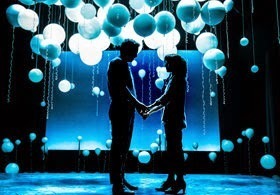 playing at the Manhattan Theater Club. This 70 minute play takes us on a tailspin of a journey in the lives of two people from their initial meeting through dating, marriage and so much more. Only they will start a scene, a light will flash and they will do the scene again in a completely different delivery, changes lines/feeling/intent and sometimes completely different outcomes. It is A Wrinkle in Time meets the romance of Somewhere in Time as this time-skipping play is ultimately a beautiful love story. Perhaps something is in the stars now (or constellations) in that we already have a Broadway musical showing us a parallel world (If/Then); however this play succeeds in this realm where the musical fell short.