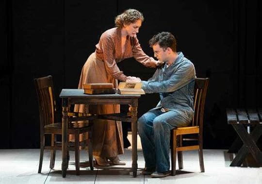 My one complaint of the evening is the darn set. Dane Laffrey has worked with director Michael Arden many times. Arden is actually listed under set design also. For some reason, they chose to put everything up on a platform and then in the middle of that platform, another raised playing area like a boxing ring with the cast watching from the side. The entire show is done up in the air. For those sitting down front, I’m sure they had strained necks. I was 7 rows back so it was a little better. Still it was a very odd choice. The worst part was, we missed out seeing the amazing orchestra lead by the composer himself. One of the highlights of the City Center shows is seeing the large orchestras they usually hire. They were hidden so far upstage behind this monstrosity of a set that the only way I knew the conductor had entered was when the balcony started to applaud.
