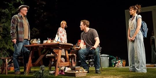 performance in this group which is why I was thrilled the Drama Desk Award for Best Ensemble went to them because they are all equally wonderful. Toni Colette grounds the show in her natural performance while Tomei gives us offbeat and endearing. Michael C. Hall is allowed to run the gamut of emotions and we get to go with him. And Letts - I'm in awe of and in love with the man that is not pushed into one box: a Tony Award winning actor and a pulitzer prize winning playwright. (Only three years my senior, I'd kill for his career!) So do I believe this play is for everyone? No, I don't. Even among my own theater-going friends - we do not all agree. And obviously the Tony committee felt it wasn't Broadway worthy...snubbing them from every category. (I did see it the night the nominations came out and this cast did not let it faze them a bit.) But I am so glad I didn't listen to the naysayers and stay away from this show. My own website says I don't believe in staying in one box and told I have to do something a certain way. Thank you, Mr. Eno for bringing that concept to the masses. Thank you to the producers for taking a chance and not allowing the 'will the tourist come?' be the reason to bring a show to Broadway. And thank you to the audiences that are going to this show and allowing themselves to experience a show with a structure unlike the other plays they have seen for years - but can be just as powerful. Even the day after, the themes and questions in this show - told in such a unique way - still have a hold on me.
