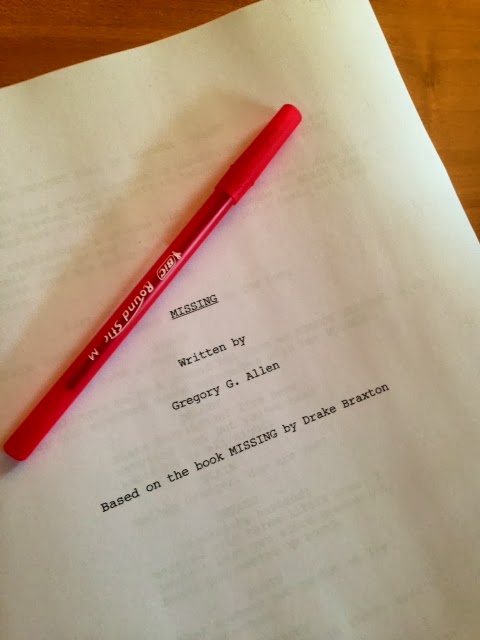 I got that wish a few months ago. We never know how connections in any business are going to work, but suffice to say that six degrees of separation played itself out and I found myself adapting the novel MISSING by Drake Braxton for the screen. The filmmaker fell in love with the book, I'm friends with the publisher, I've always wanted to write a full length screenplay and well....the working draft is finally completed.It has been an amazing ride working closely with the filmmaker - back and forth as we tore apart Braxton's novel to decide what parts will work best in a film. I used my background of writing for the stage to think visually, knowing there are parts of a book that must be left out when changing mediums and well aware that audiences often say "the book was better". But I've loved every minute of it! I felt as if I was doing it all secretly, but now that the director is taking my screenplay and will begin location scouting next month, I knew I could finally blog and share.