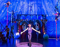 So much has been said about a woman playing the Leading Player – both from purist and others. (I actually spoke to a female director friend of mine who did the same thing several years ago when she directed it.) There really is no reason why this role must be male or female. Patina Miller is an incredible ring master in this circus: singing, dancing, doing stunts and then showing some great acting chops towards the final scenes of the play. Matthew James Thomas is an adorable Pippin (that has gone blonde since starting the show and looks much more like a boy band member now). He has an incredible voice and makes us want to root for him on his quest to discover his purpose in life. I do wish the music director would not have been so lenient on back phrasing when he sings. We know these songs, so the fact he gets so behind the measure makes it sound like he is off. (Personal pet peeve, I’m sure – but it’s very noticeable.) It was wonderful to see Terrence Mann and real life wife Charlotte D’Amboise working together as Charles and Fastrada. I’ve always been a fan of both and they do not disappoint. (And they have plenty of examples of their own kind of magic acts throughout the show.)