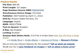There on the screen was my best ranking. #16 of all Free Kindle books and back in #4 in Women's Fiction.