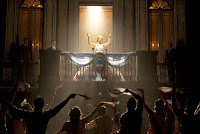 There is much to love in this production. The moment it started I was taken in by the film footage used of the actual Eva Peron. The set is absolutely stunning with lighting that gives beautiful depth as actors can be seen far upstage in shadows. The dancing...all those tangos - so wonderful to watch. The cast members that I have seen playing leads in other musicals that took ensemble roles in this show goes to show how much New York actors wanted to do this show. And one of my nieces seeing it with me (who is studying sound design at Penn State) gave me a full lesson on the intricate sound design used.