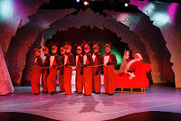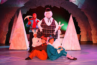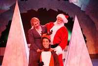 I love that Growing Stage utilizes the likes of professional actors mixed with adorable children to fill out the roles on stage. The professional artists make up some of the larger roles, but I must admit that I was impressed with this fine company across the boards. Becky Nitka is wonderfully child-like in the title role and has her misfit match in P.J. Schweizer's comical Hermey. These two take us on the lessoned-filled journey that 'different' is not a bad thing while entertaining us in dance and song. Megan Hurley's Clarice (the doe that catches the eye of Rudolph) has the beautiful soprano song There's Always Tomorrow from the movie, but adds a graceful ballet to the mix. David Spellman, William Ward, Will Sandoval and Steven Nitka all bring excellent exuberance to Yukon Cornelius, Sam the Snowman, Coach Comet and Donner/Boss Elf while making me believe their claymation counterparts have truly come to life. Director Stephen Fredericks is the much loved man in the red suit and his Santa was spot on. If I closed my eyes I swore I was hearing the soundtrack from the TV show. Actually, each seemed to have truly watched the movie several times to deliver memorable lines in the way our ears are accustomed to hearing it (a special shout out to young Bryn Bennett as Charlie in the Box), yet still making the roles their own. I was quite impressed with the dances the children would do...right down to the two bunnies in the winter wonderland we all know from the TV show. Huge kudos to this production in how they handled King Moonracer and The Abominable Snowman.