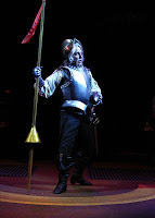 The Shakespeare Theatre of New Jersey is celebrating their 50th anniversary and Artistic Director Bonnie J. Monte (having spent 22 years in that position) knew she wanted to produce Man of La Mancha as a dedication and thank you to the dreamers and theater people who have supported the company. As one of those 'crazy theater types', I applaud her for taking on this show that walks the line between reality and insanity - and what a wonderfully polished and unique production she has given us.Man of La Mancha rides on the shoulders of the actor portraying Cervantes/Quixote and Monte has an excellent strong-shouldered leading man in William Michals. He is much more than the booming voice that can deliver "The Impossible Dream" or the beauty of "Dulcinea". He is an actor that transforms himself in front of the audience to that of a frail man teetering on the edge of sanity with an incredible ability to convey both comedy and pathos to lead his audience on a journey. The Broadway performer never goes too far in his portrayal and fills his performance with truth. I've seen numerous productions of this musical and have witnessed actors that range from performing it for themselves to always giving to their fellow ensemble. Michals falls in the latter category.