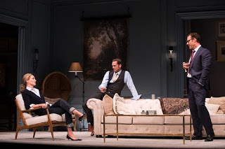 We often see stunt casting on Broadway to bring in big names for a limited run so producers can recoup money quickly. I didn't feel that was happening in this piece. Uma Thurman does a great job making her Great White Way debut as a witty and calculating woman standing by her man as they do whatever necessary to get what they want. I haven't seen her in anything recently and I have to say, she was giving me shades of Glenn Close in this performance as Chloe. She's very at home on stage and has a natural way about her that is refreshing.