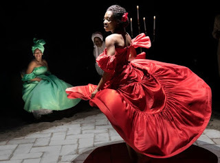 Ti Moune goes on a journey where she learns the hard lesson of being judged based on your social standing and class. But in this fable, the Gods play a huge part as humans are mere pawns for them to play a game with their lives. The team behind this revival decided to play around with the genders of the gods and when I first heard it, I assumed it was a gimmick. WRONG AGAIN. The gods don't need a specific gender and it works perfectly. As someone who has seen several productions, I LOVE Papa Ge as a woman in this production: this 'death' is like no other.