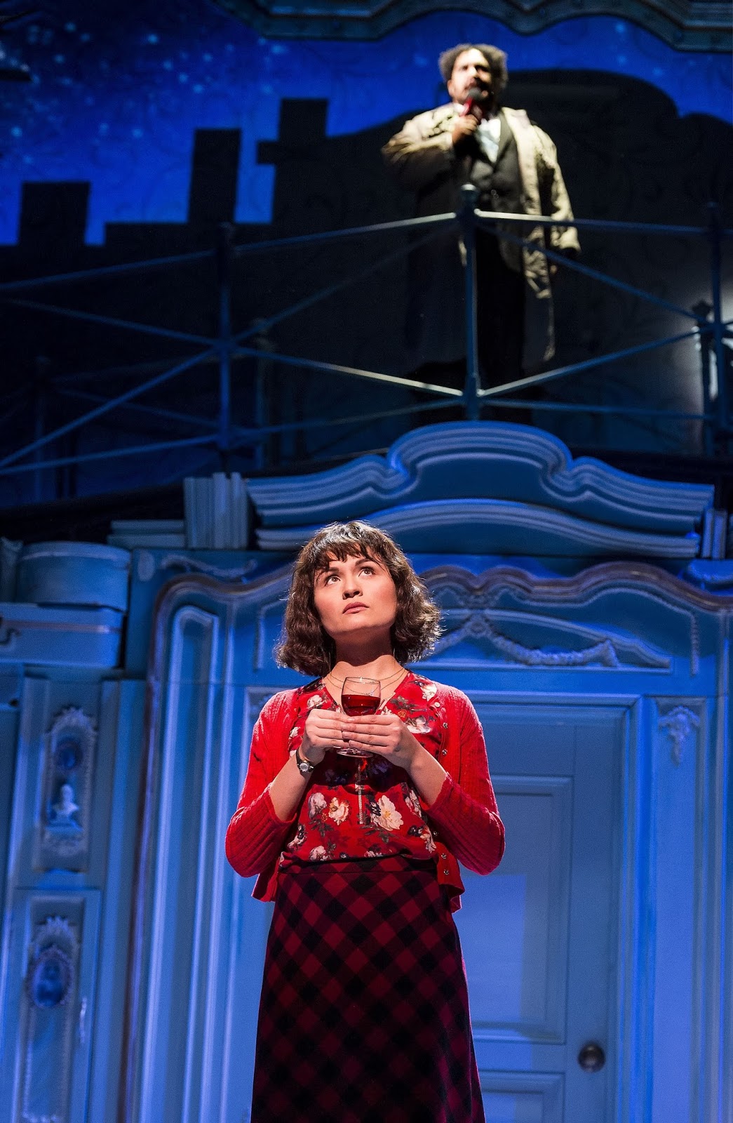 There are over 20 songs that start to go together because the book needs to be given room to breathe before jumping into yet another song. And then when we finally do get a true book scenes, it's at the end of the night when (stop reading if you don't want any spoilers) the two women finally meet face to face and the musical stops everything to give them a true scene...which for this audience member came much too late. To do an entire musical where the two leads never interact is probably the biggest disservice of this entire show.