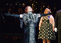 In trying to be so even - Mr. Greif stages it in such a repetitive, boring manner that I knew exactly what the next scene was going to be - down to when the man would sit on a desk - it's the same scene over and over told for a different character. (Sorry, we already have Groundhog Day opening this same season.) I was complaining at intermission about the direction having no idea it was someone that I loved and respected so much. Everyone crosses and circles each other all night long with no intent behind their movement. I get that we wanted to show these women on parallel paths, but I would have preferred something deeper in the storytelling to pull us in. I actually believe concentrating on one over the other would have made for a more compelling story. There is only one true moment that comes close to any emotional depth that we saw in Grey Gardens and that's when the incredible Ms. Ebersole sings the song "Pink" about her legacy. Ms. Lupone is allowed to belt every song and the audiences eats it up. (She is in amazing voice!) She delivers one-liners throughout the show that feel we've been plopped into the middle of RuPaul's Drag Race.