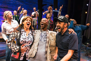 I'm breaking my own rule as I usually don't write about shows during previews, but it's obvious this show is a well-oiled machine and I want as many people as possible to know about it and go see it! It's about love, compassion, unity - all things we need to hear. The show starts with a bang and in 100 minutes with no intermission tells the story of the people of Gander as well as "the plane people" that have come from everywhere to their small town. Director Christopher Ashley keeps this ensemble constantly moving - sometimes without giving pause for applause - which the audience desperately wants to give. This ensemble of amazing performers are giving their all on that stage and we feel every bit of it. They switch characters in the blink of an eye and we never lose sight of who they are at any given moment. I say ensemble as it truly is an incredible group of people working together: no star turns in this show (though I must say that I love seeing Jenn Colella and Chad Kimball back on stage.) But I truly fell in love with every single performer on that stage including the band who plays on stage, adding to the overall energy and passion.