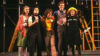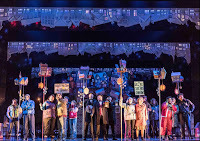 The score written by Tim Minchin (Matilda) is serviceable. I don't say that to be rude, it just doesn't stand out for me...it's just there. It's also an odd collection of sounds that don't all jive together. We have modern musical, old-time country, rock, a little alternative rock (think R.E.M.) so for me it's not the highlight of the musical. Which is a shame since that's what this is...a musical. There are some very interesting rhymes at times and at others, imperfect rhymes jump out and offend my ears. There are also sub characters given major songs which have no point being in the show. It's almost as if the writers couldn't decide if they wanted to tell the story of Phil having the ensemble be caricatures around him or let us delve inside of their minds too for their stories...so at times they give us both. Which makes for too long of an evening. However these elements are all staying (see above where the album has already been recorded). Danny Rubin has adapted his own screenplay for the film, but both he and Minchin miss the mark by not giving the lead character an "I Want" song. Every musical you know tells us what the main character wants to achieve by the second song and we watch their journey. That's a major issue with the structure of Groundhog Day as a musical - Phil doesn't have an overriding goal (so they've given it to Rita to share early in the show).