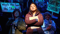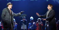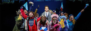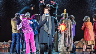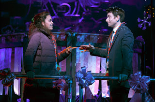 The musical ran in London to very good reviews and received 8 Olivier Nominations (London's equivalent to the Tonys) which will be announced April 9th. Producers brought it to Broadway where it will officially open April 17th after it's preview period, however the team must feel it's in good shape as they've already recorded the original Broadway cast album to be released two days before it opens. HUGE kudos to Matthew Warchus for his incredible direction of this piece which could feel like a broken record since it repeats itself over and over. This artistic director of the Old Vic in London and his creative team are truly pulling out all the stops to create a fun-filled evening on several turn tables, lots of LED lights, falling snow, toy cars, and yes - a man in a groundhog suit (wonderful scenic design by Rob Howell). I don't want to give away too much of the magic of the show as it should be enjoyed in the theater, but they have come up with some cool ways to show time starting over and over and over. (Love the entire sequence during "Hope" in Act 2!)