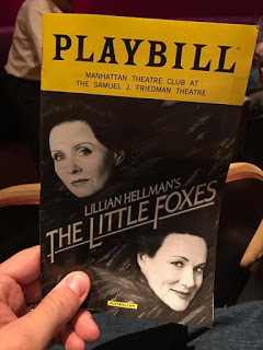 In spring of 1984, I was in a high school production of The Little Foxes by Lillian Hellman and 33 years later I was finally able to see it on Broadway brought to us by the always wonderful Manhattan Theatre Club. What a great production it is! Every technical element in the production is perfectly fitting of the family drama set in 1900. From the incredible set by Scott Pask to the period costumes by Jane Greenwood to the lighting by Justin Townsend that gives us three completely different days...all in light and shadows.The show first ran on Broadway in the 30s and that entire cast (except Tallulah Bankhead in the lead role of Regina Giddens) did the film version...that role went to Bette Davis. I read that Ms. Davis changed the character of the sister fighting her brothers and husband in this story of greed and power after seeing Ms. Bankhead's incredible performance on stage. Regina had been played more as a victim trying to get her own when it first came out, yet Ms. Davis created a cold and stern woman in the role and ultimately, that's what people came to know the character to be.