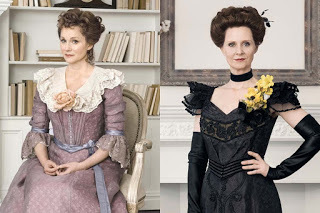 Linney as Birdie & Nixon as ReginaIn MTC returning director Daniel Sullivan's production, Regina isn't so much as cold as she is sly and calculating - sly like a fox. She attempts an air of kindness to achieve want she wants - at all cost. It's an interesting take except that her brother Ben mentions towards the end of the play she should try more kindness to get what she wants...hmmm....isn't she doing that with the constant 'grit behind a smile' performance that she is giving? I bring this up, as I'm not sure how Regina is always played in this production. Producers have decided to split the role. At some performances Laura Linney plays Regina while Cynthia Nixon plays her much more frail, alcoholic sister-in-law, Birdie. And then other performances, they switch each witnessing what the other does in each role every night. I saw Cynthia play Regina. She was stoic, dignified, and a woman slightly on the edge noticing she could lose it all at any moment. At first I was uncertain of this portrayal, but she absolutely won me over. Ms. Linney was incredible as Birdie. She layered Birdie's normal mousy portrayal with a wonderful array of choices. While Birdie is more of a supporting role - it's a juicy one with a monologue worthy of a Tony nomination...for sure. I love both of these actresses and was so glad to get to see them. (Now I'm wondering if I will have time to return and see them in the other roles.)