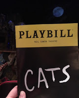 I was amazed how much the lyrics and certain visuals all came back to me so quickly. Gillian Lynne's signature choreographed moments are there, but Andy Blankenbuehler (of Hamilton fame) has put his own touch on the show as well. John Napier has created a set and costumes that remind us of the original while still being new. This cast is dancing and singing their butts off and it's absolutely wonderful! I usually sit back in the theater to take it all in, but my friends love sitting down front so we were on the second row and I could see the nuances these actors bring to their feline roles.