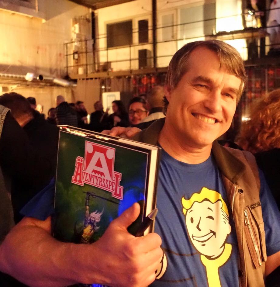 Den här veckan släpps inte mindre än två böcker som handlar om svensk rollspelshistoria. Jag har skickat material och är intervjuad i båda. Idag lade jag vantarna på den avbildade "Finna dolda ting"* av Anna-Karin och Daniel Linder Krauklis**. Daniel har i och för sig lovat skicka mig ett ex, men jag kunde inte vänta utan sprang ut och köpte boken på Akademibokhandeln. Jag får ge bort den andra i julklapp.Efter en snabb skumning av boken och mer detaljerad genomläsning av de partier som direkt berör mina egna eskapader, kan jag bara konstatera att boken inte bara är en njutning utan en sann kulturgärning. Här får man en tämligen fullständig genomgång av den svenska rollspelshistorien från 1970-talets första, trevande tärningsslag (den ramlade in under soffan) fram till idag, när vi glädjande nog ser en nytändning bland pengastinna medelålders nostalgiker och deras barn. Företeelsen är viktig att dokumentera för många hundratusen ungdomar spelade rollspel när hobbyn var som störst.