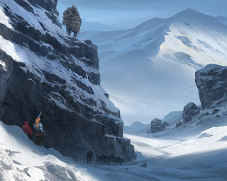 Jag är väldigt förtjust i Ekelunds illlustrationer och tycker att ljussättningen är fantastisk i bilden. Har också sett andra utkast från glaciärmiljö liksom svärdet jag tidigare lade ut vilket utarbetats ytterligare. Allt ser lovande ut och jag återkommer med mer.