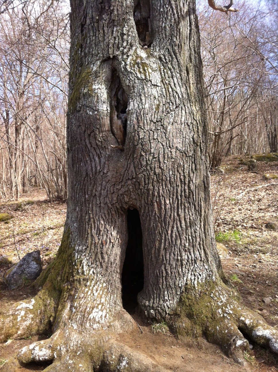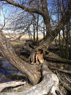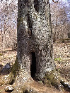 Nu när jag nämnde ett annat gammalt träd på min Facebook-sida kom jag ihåg den fallna pilen Bladverk och gick dit för att ta en bild. Trädet är i sämre skick än när jag var liten, löven har inte kommit än och kor har trampat upp marken runt det, men det lever fortfarande. Jag tänkte att det kunde vara roligt att visa det för er. Inte minst kan ni återvända när ni senare läser romanen. Romanens Bladverk har utrymmen stora som kajutor inuti och dessa är inspirerade av den ihåliga eken på nedre bilden.