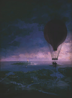 Fria ligan arbetar med den nye illustratören Joakim Ericsson för Lojalisternas tid - det äventyr som jag och Jerry Lasota har skrivit till rollspelet Svavelvinter. Utan att förringa tidigare illustratörer så är jag väldigt förtjust i hans stil. Bilden föreställer brandvakter som spanar från varmluftsballong under en tidig morgon över huvudstaden och kommer att pryda äventyrets baksida. Ballongen är fäst i stadsmuren mot Karniback. Ni kan se ytterligare en illustration av Joakim till speläventyret på Fria ligans blogg. Den föreställer Ingolmo Dokellas perukmakeri i Tricilve.