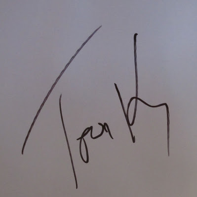 Signing for reporters but ignoring his fans. His minder is seen holding my book