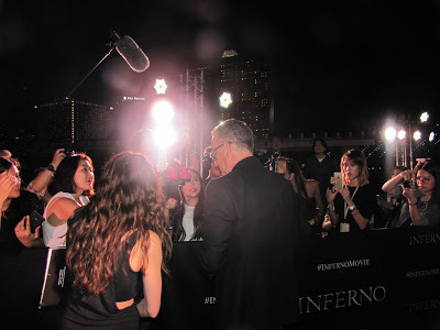 So after about waiting an hour, one of the shortest waits on a red carpet I've ever had, Tom Hanks, Ron Howard and Irfan Khan appeared in quick succession and we led straight past the fans and to the waiting press members and there were a lot less fans than there were press members from the look of things.