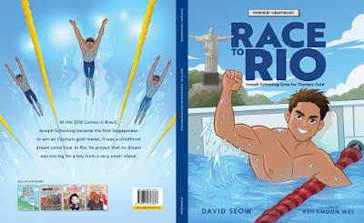 Joseph thanked everyone for their support and after a few more words he boarded his bus and was off to continue his victory lap around the country. His triumph came at a time when I was about to give up my own journey of writing (I'm always on the verge of quitting) but I was inspired to write a kids' book about this young man. Dad helped me draft an email to Mr. Schooling to ask permission to write it and he kindly agreed. But I was beaten to the finish line by another book From Kid to King funnily enough the illustrator of that book is Daryl Seow (No relation). And so I started work on my first non-fiction picture book. Like Joseph's Olympic journey, the road to publication was fraught with ups and downs, but it was finally published. Race to Rio: Joseph Schooling Goes for Olympic Gold. Two Schooling books by two Seows. There's a joke in there somewhere but I can't think of one right now.