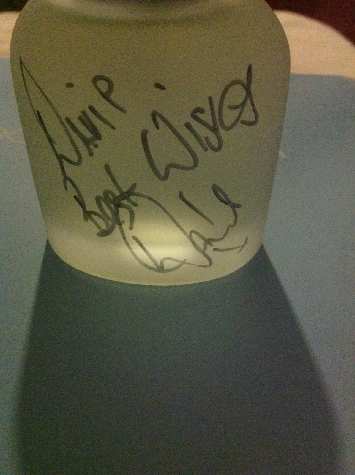 Once the line was set up, I was kindly led to the front of the queue. I was given a complimentary 75ml bottle of Light Blue and told that he would only be signing the bottle but I was later told that everyone would be allowed to get another item signed. I opted to have him sign the pencil sketch that I had attempted of him. As you can see, it was an #EPICFAIL. I definitely need to practice more.