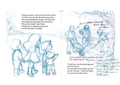 5. Once a draft is approved, the illustrator begins to sketch the story out.