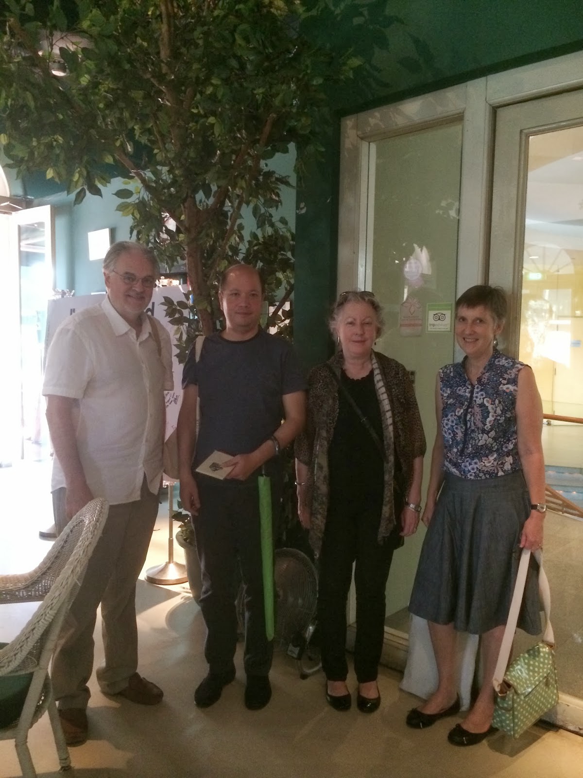 John, Linsay, Emma and meEmma and I met up with Linday and John at the super posh Fullerton Hotel before we deciding to lunch at the nearby Indochine. Over a lunch of springrolls and Vietnamese pho, we discussed our experiences in publishing. Linsay has had a wealth of experience in the publishing field, having worked for the likes Scholastic and Random House. John's a medical doctor who runs Pitt-Street Poetry with Linsay. Their younger son, Jasper, is an artist who is one of the directors of the Singapore Gallery, Future Perfect and their older son Dominic is a broadcaster with ABC. What a treat it was to hear about their journey in publishing and what a talented family. Thank you for the time to meet with us, Linsay and John, and thank you for the books!
