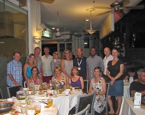 Dinner with Linda Sue Park in 2011SCBWI Singapore is relatively small in terms of how big most SCBWI regions are, but in three years it's grown from a core group of six members, including RA Kenneth Quek and coordinator Catherine Carvell, into a group of about 40 members with an average of 17-18 members attending the monthly critique meetings.