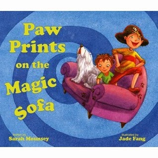 Sarah at the book launch of Paw Prints on the Magic Sofa