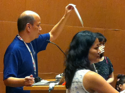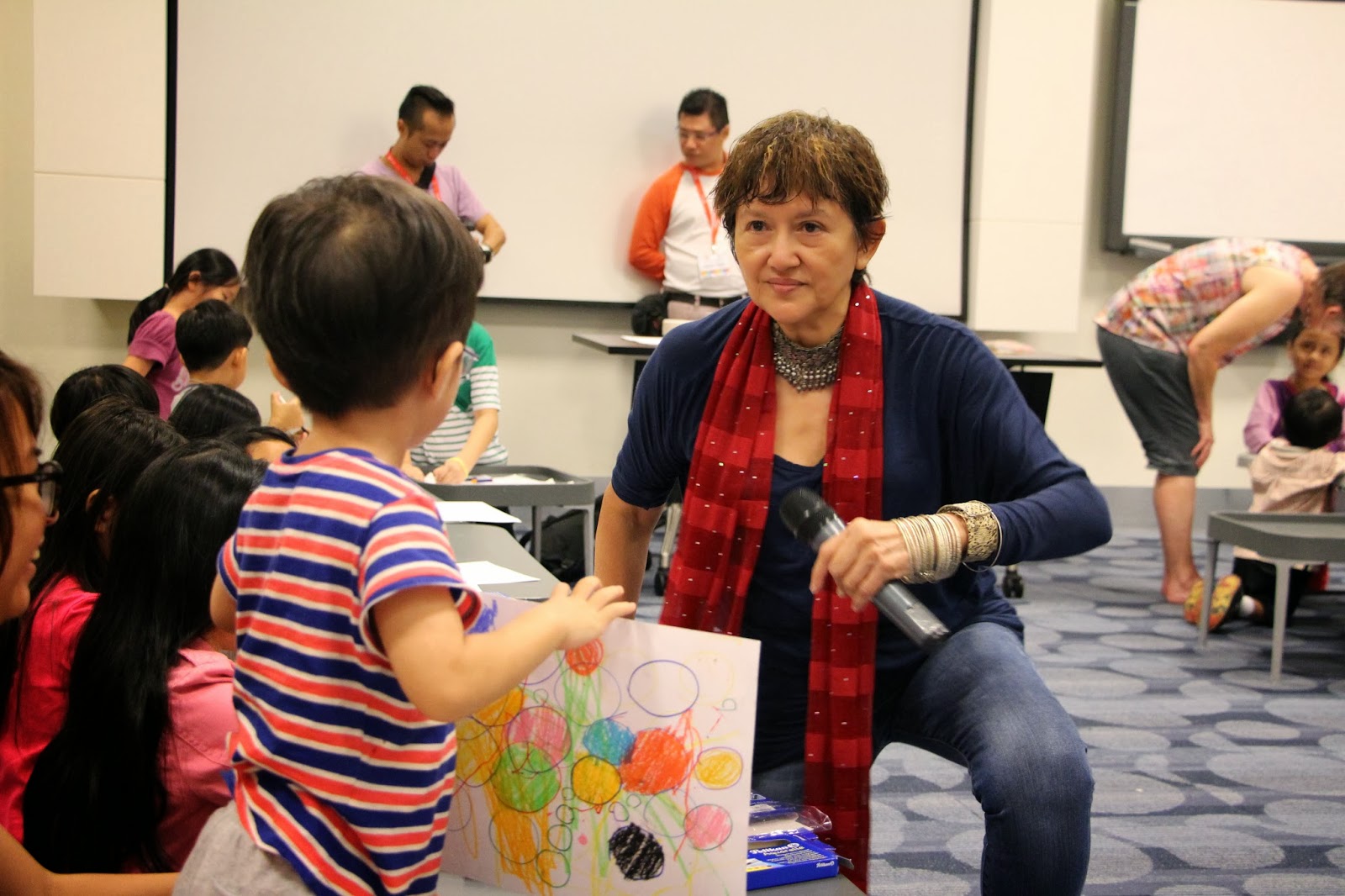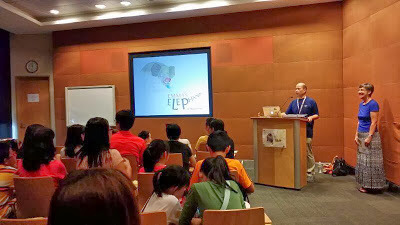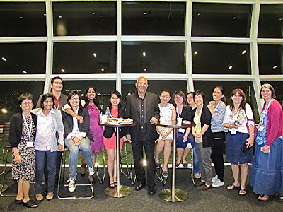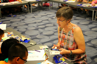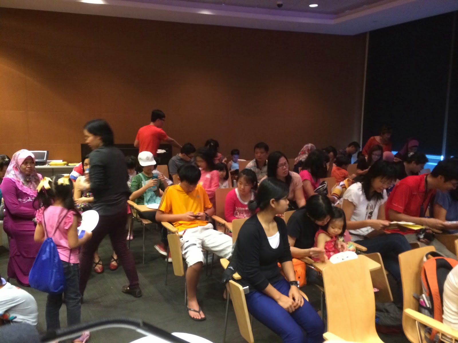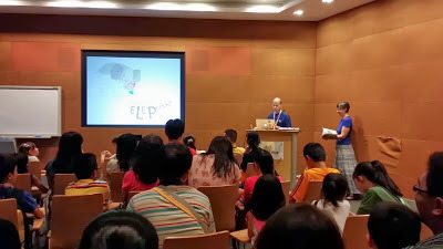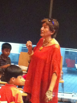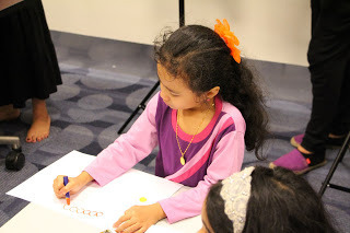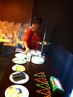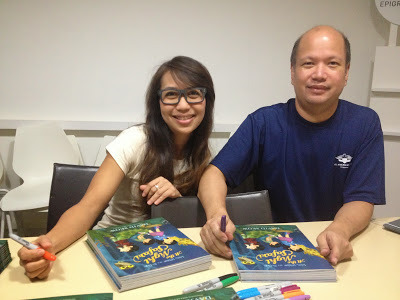 Then it was time to set things up. I'm always anxious before any presentation so I was thankful that Auntie Susanna, Karen and Kenneth were already in the room. While Ken had to dash off for another event, Auntie Susanna and Karen started setting up the art supplies, candy canes, and bookmarks for the kids, and Emma and I braced ourselves for the story reading. Soefara, my illustrator for the Sam, Sebbie and Di-Di-Di series, showed up just as we about to start and took a place at the back of the room. Thanks, Soefara!