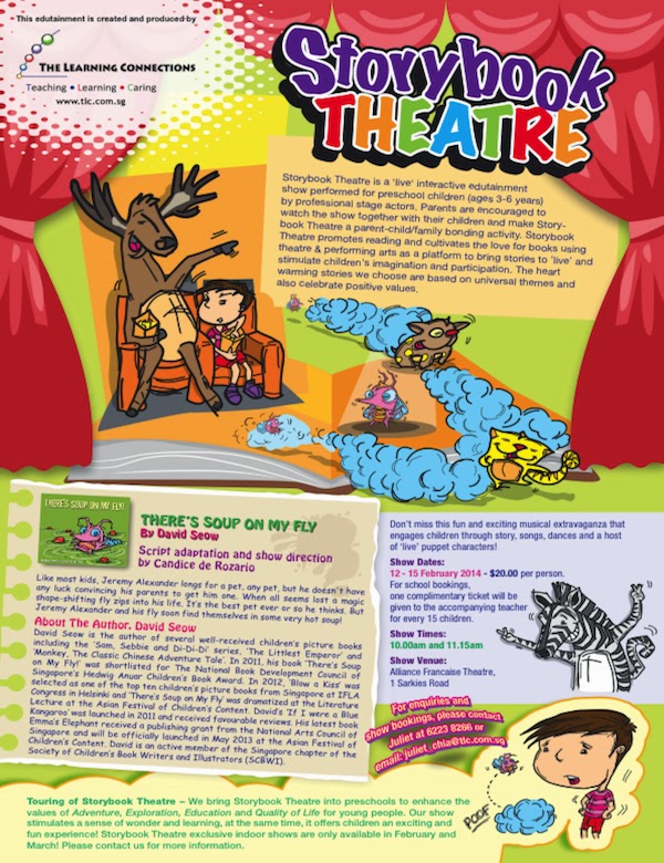 This February Storybook Theatre will be staging their adaptation of my book There's Soup on My Fly! The tickets are priced at about $20, so it's really reasonably priced. Places are filling up fast so book your seat now!