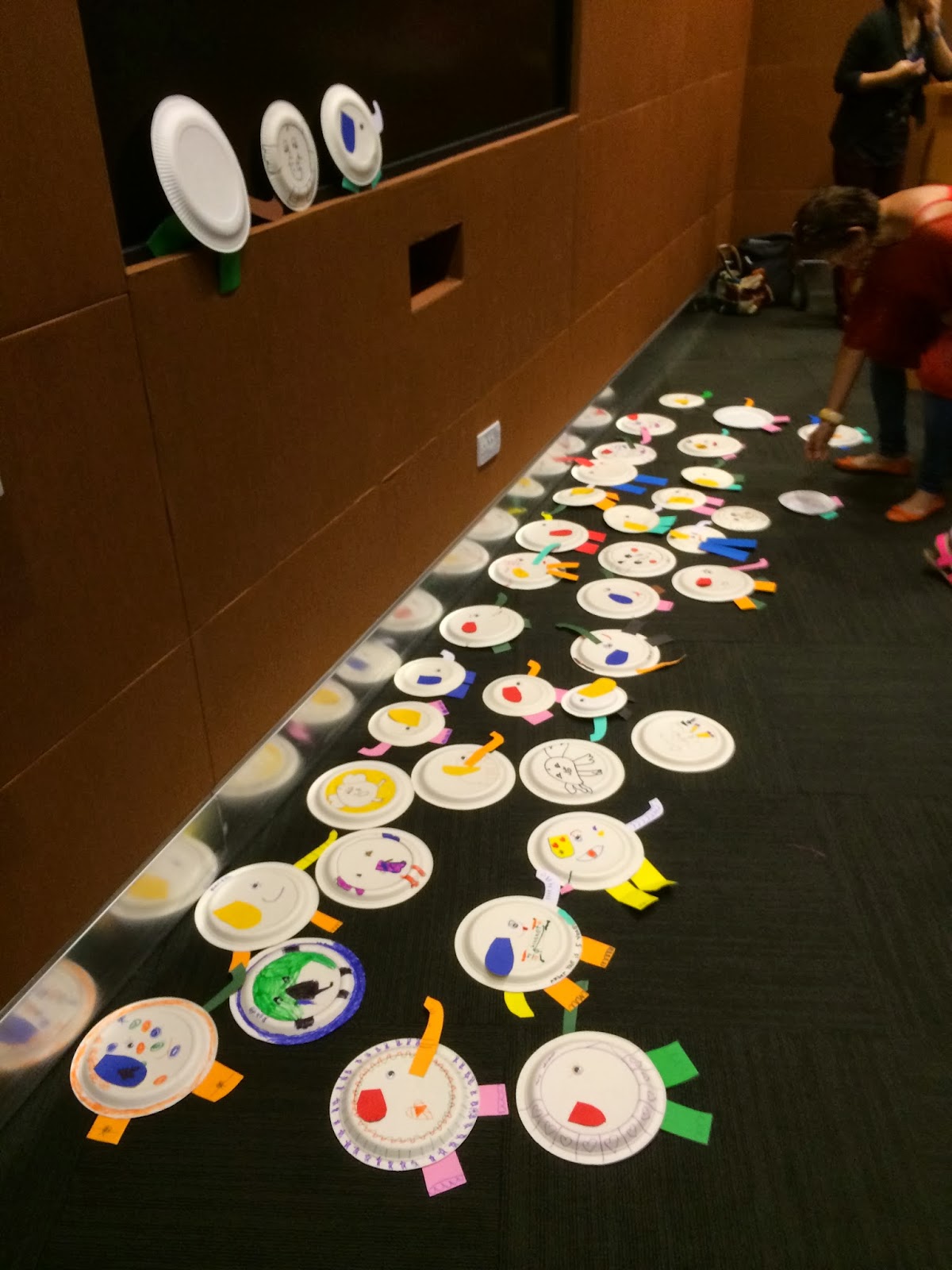 Then it was time for art and craft and Auntie Susanna, Karen, Emma and I helped the kids and parents make paper-plate elephants. Thanks goes to Vivian Kirkfield for her art and craft idea!