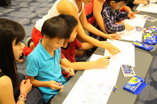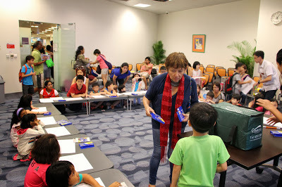 This weekend I headed down to the National Library for NTUC's annual Back to School Fair for a book reading and art and craft session. Thankfully Emma agreed to read the story and Auntie Susanna and Karen also kindly volunteered to help out with the art and craft session.