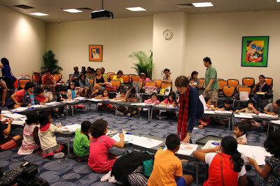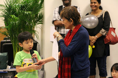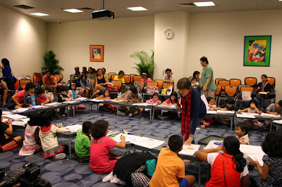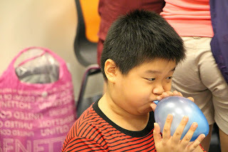 With that, Auntie Susanna's session Bubbles, Balloons and Art came to a close. Before everyone left, they were handed out balloons and specially designed art cards. There was a mad scramble for the blue balloons and some kids expressed much disappointment was expressed when those ran out. Having said that, I dare say everyone had a really good time.