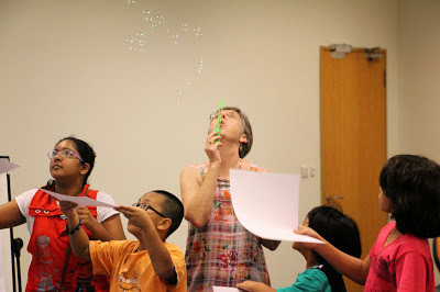 The next day I was back at the Fair for Auntie Susanna's session: Bubbles, Balloons and Art. And it was packed, packed to the brim, so much so that the volunteers started turning away some kids. One girl burst into tears as they closed the door on her.