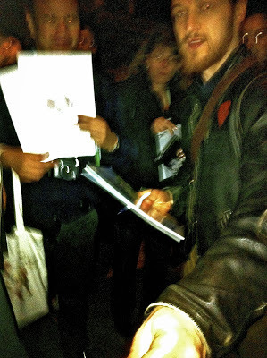 In London presenting James McAvoy withcopies of Emma's Elephant and If I Were a Blue Kangaroo